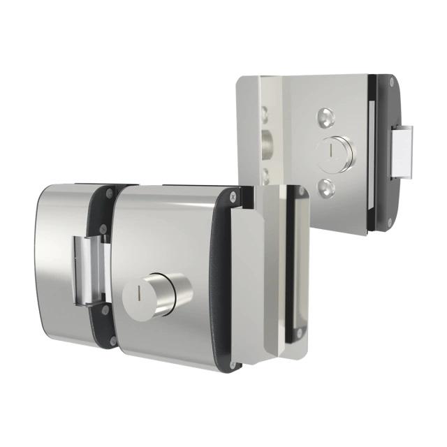 Fechadura Elétrica AGL Para Porta de Vidro Com Acabamento Cromado em Aço Inox Polido.