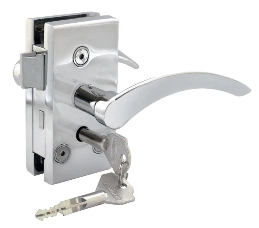 - Fechadura para porta de vidro temperado pivotante com maçaneta e chave tetra